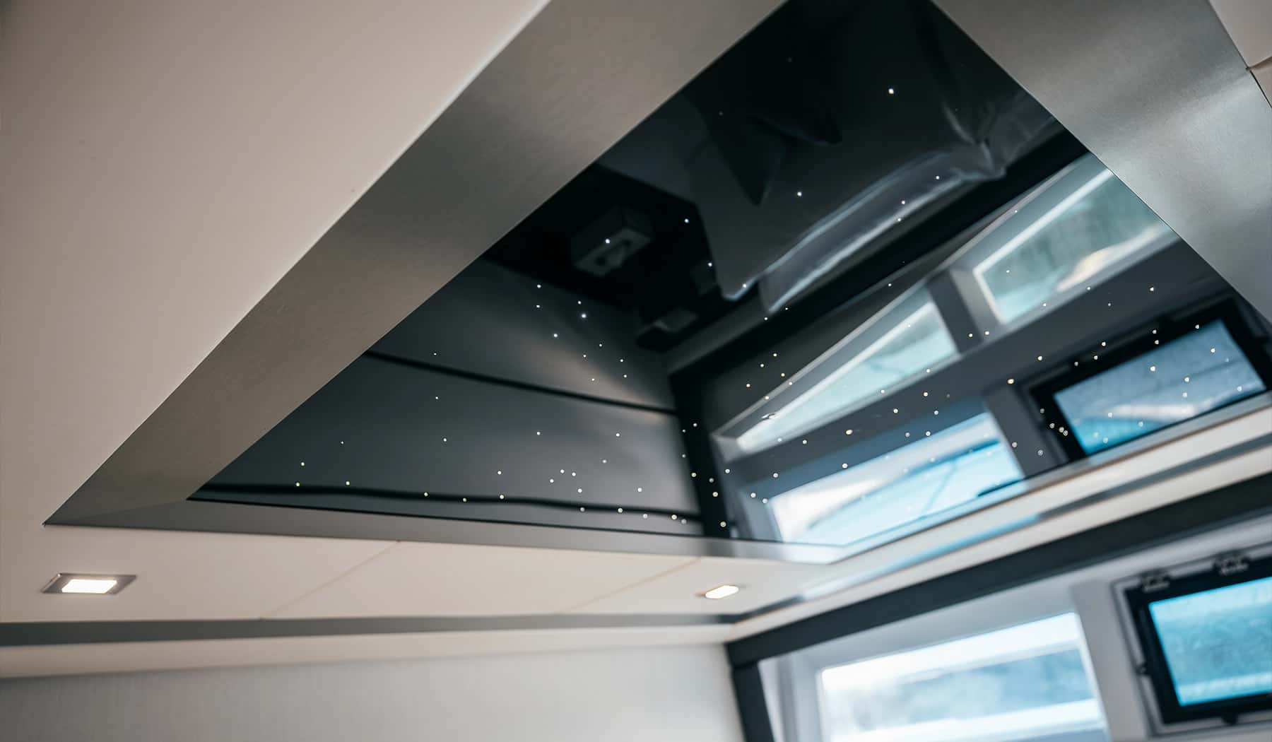 State-of-the-art entertainment system with Wi-Fi and satellite TV.