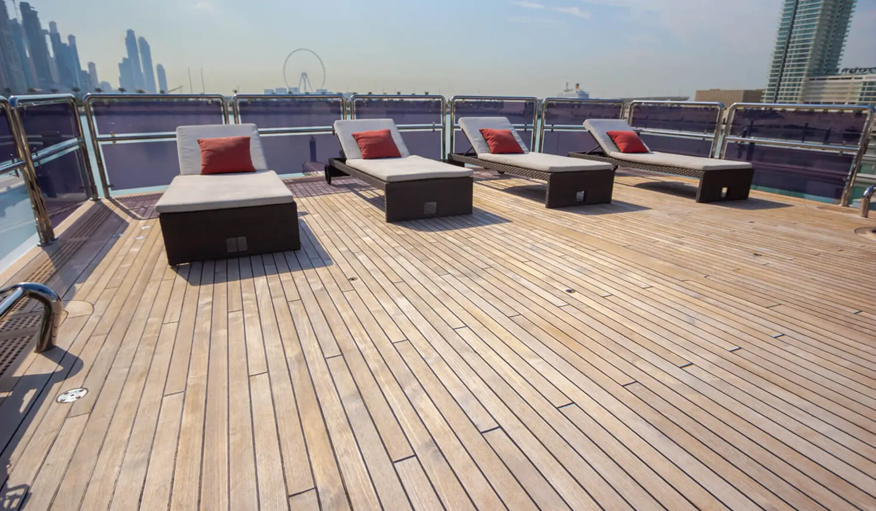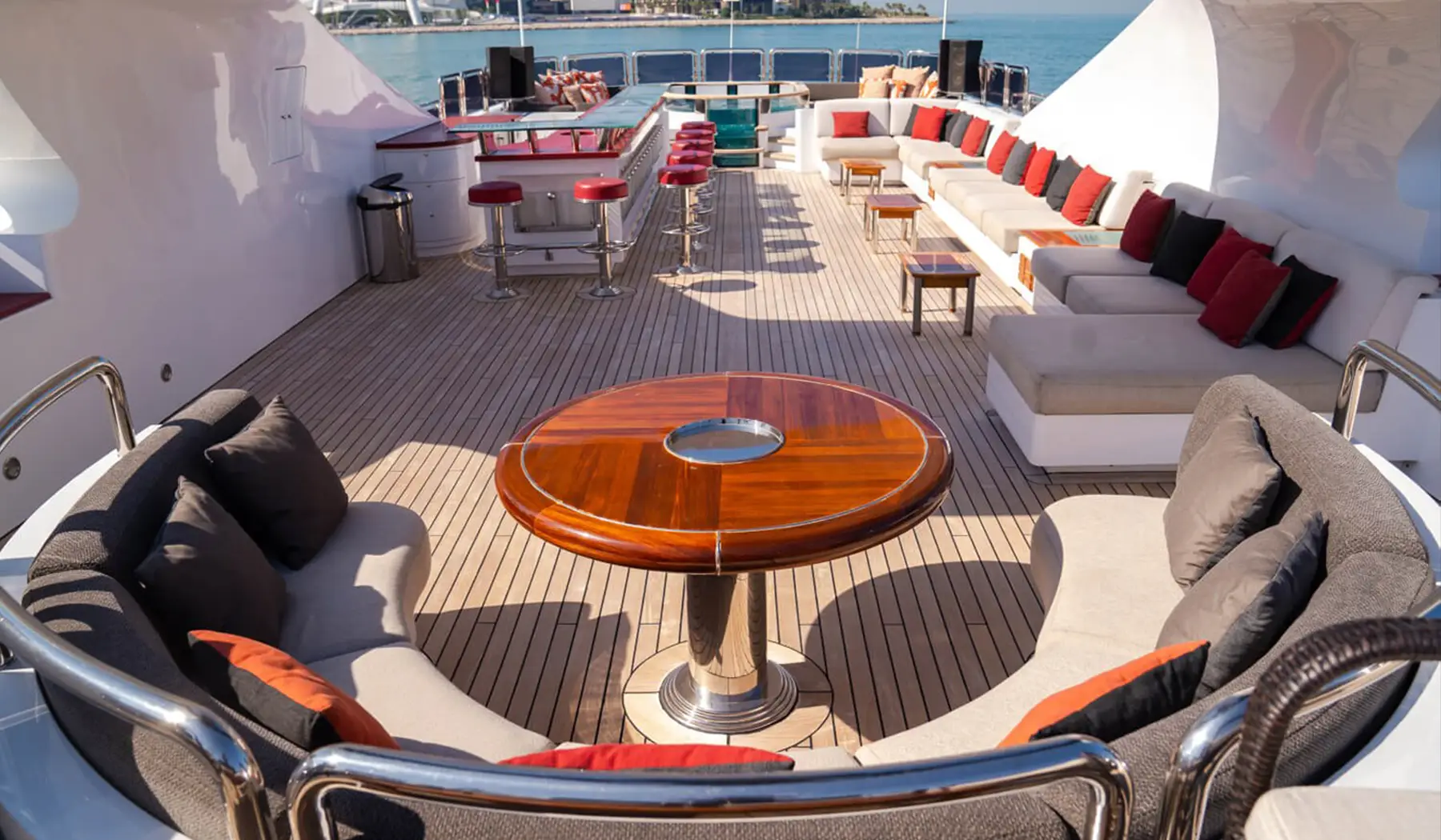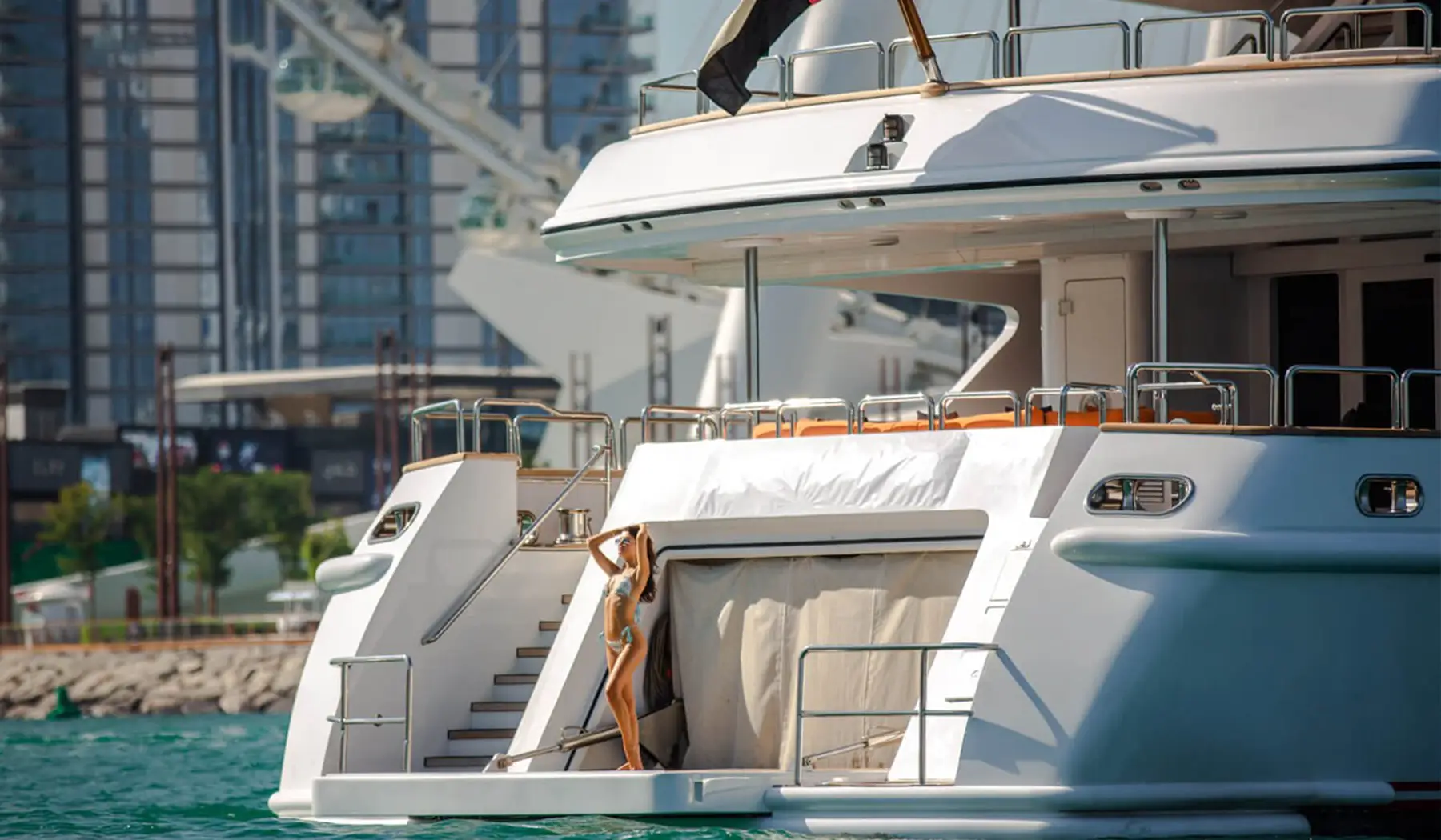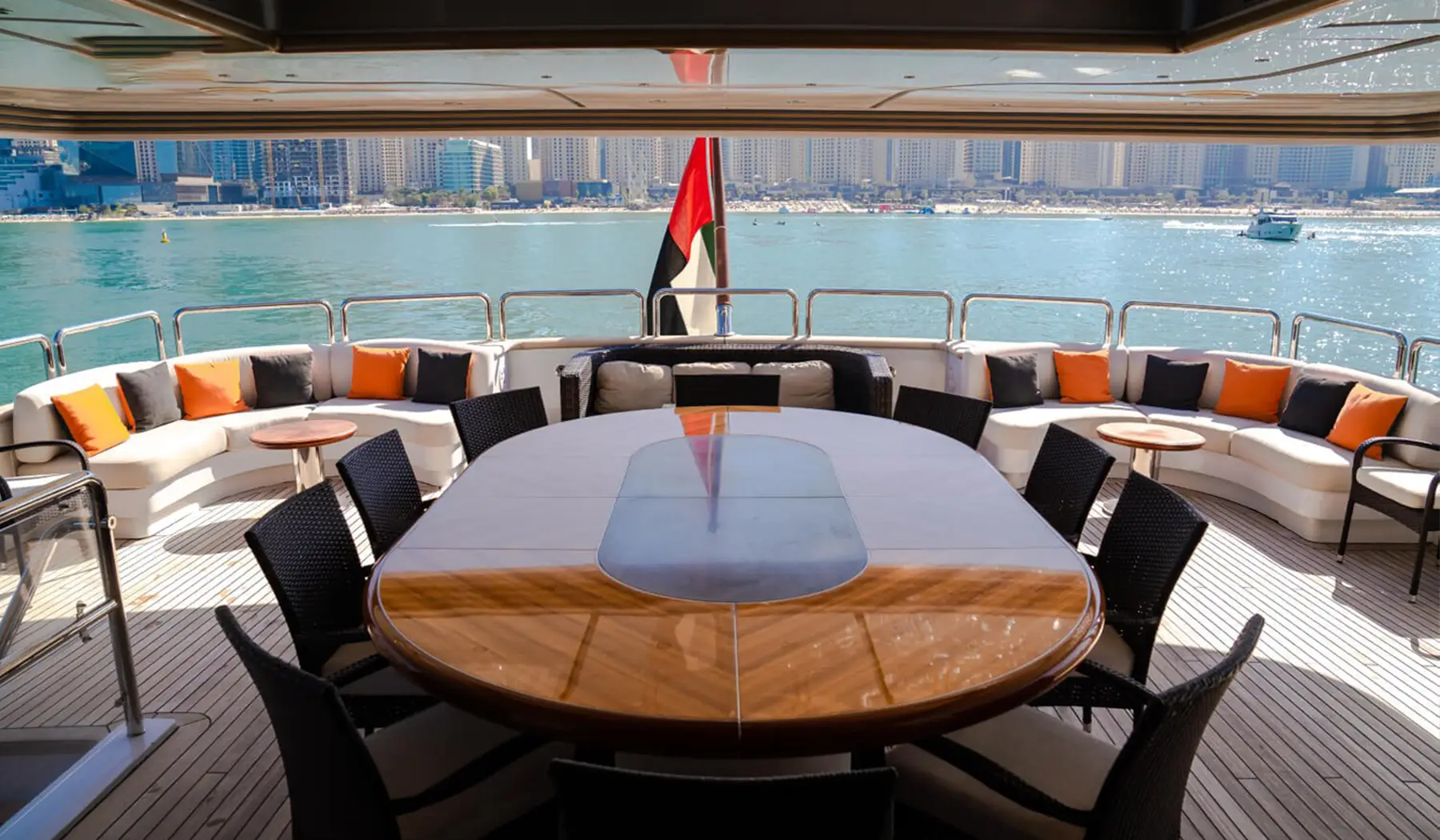 Powered by two MTU engines and cruising comfortably at 16 knots, Benetti provides a smooth and safe journey across Dubai’s sparkling waters. With a professional crew and exciting water toys, this yacht is the perfect choice for creating lasting memories in unmatched style.