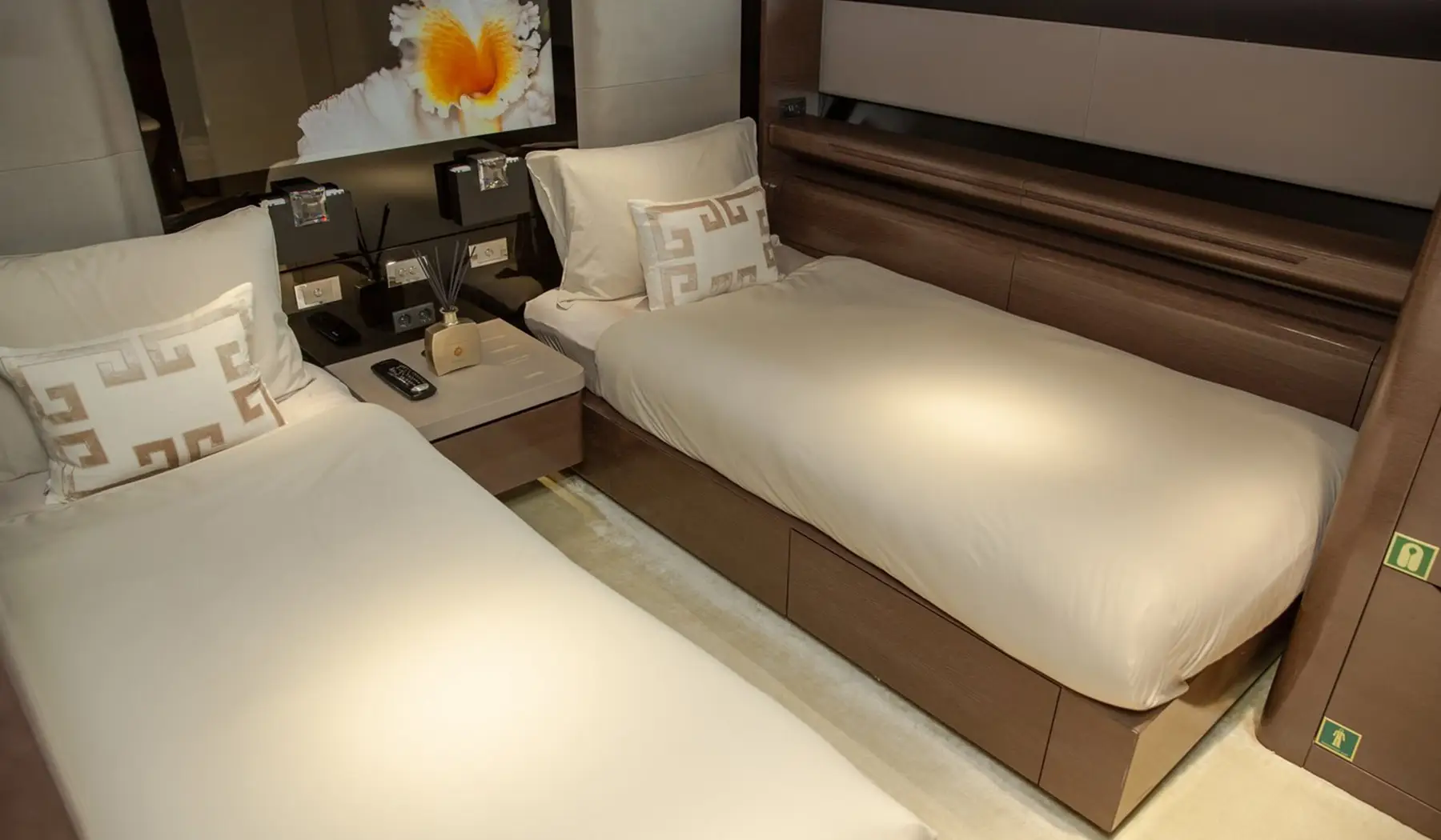 The yacht’s expansive deck space is ideal for sunbathing, socializing, or alfresco dining, while the interior boasts elegant living areas, including a stylish lounge and sophisticated dining area. The master suite provides a serene retreat with a king-size bed and spa-inspired ensuite, complemented by two double cabins and two twin cabins, all with private bathrooms. With a fully equipped kitchen, gym, and spa onboard, Suffuriya ensures a seamless blend of relaxation and adventure.